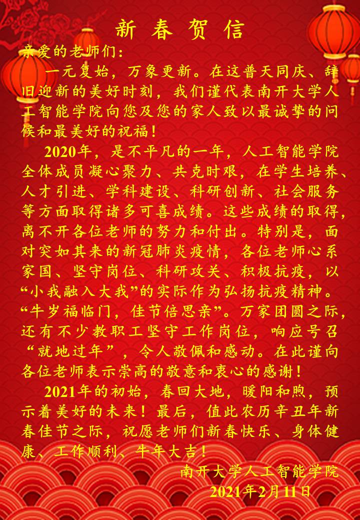 致fun88官网体育全体教职工的新春贺信