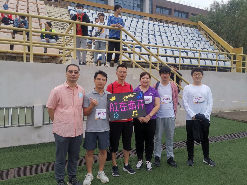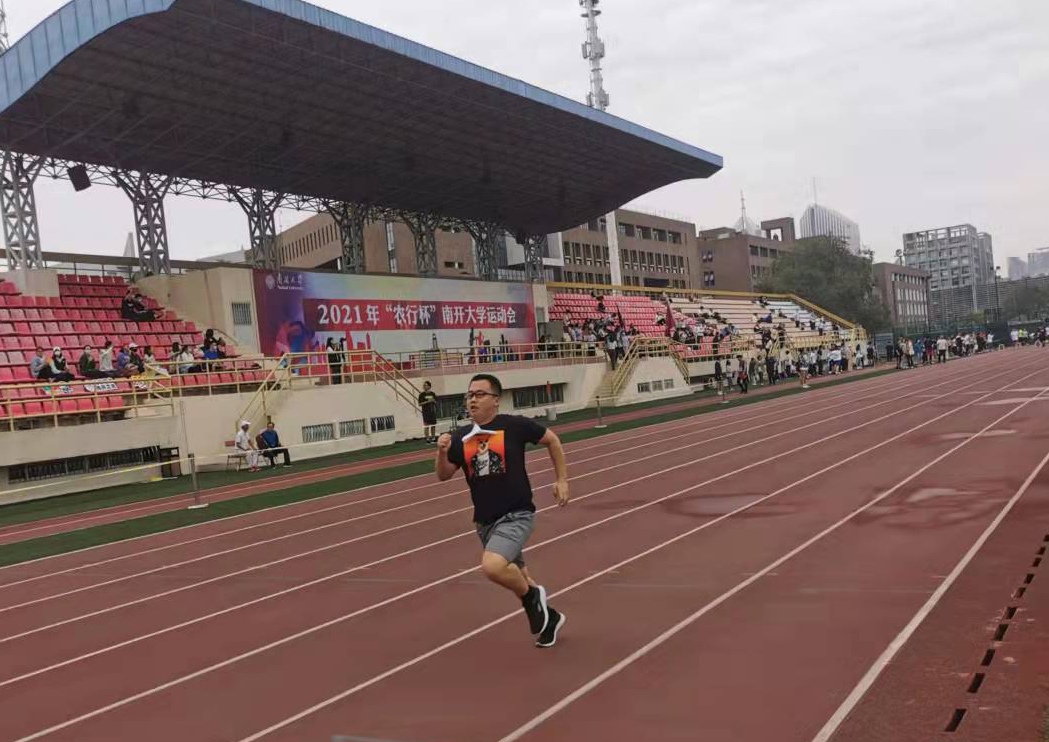 在雨后清凉的赛场,在微湿的跑道,比赛正式开始。虽然天公不作美,但是老师们的参赛热情丝毫不减,“赓续百年初心,担当育人使命”,醒目的横幅标语,提醒着大家教书育人不仅要专业素质过硬,还要德体全面发展。老师们在体育竞技中尽展人工智能的蓬勃朝气与青春活力。