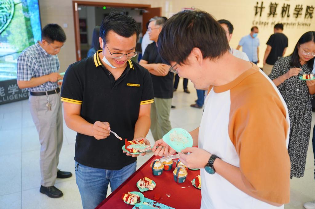教师们合影后,赵新经理亲自为大家分享蛋糕,将活动气氛推向高潮,大家享用蛋糕的同时,亲切交流,现场气氛融洽,笑声不断,纷纷拍照留念。老师们在欢度节日的同时,更明确了立德树人、发奋进取的治学态度。