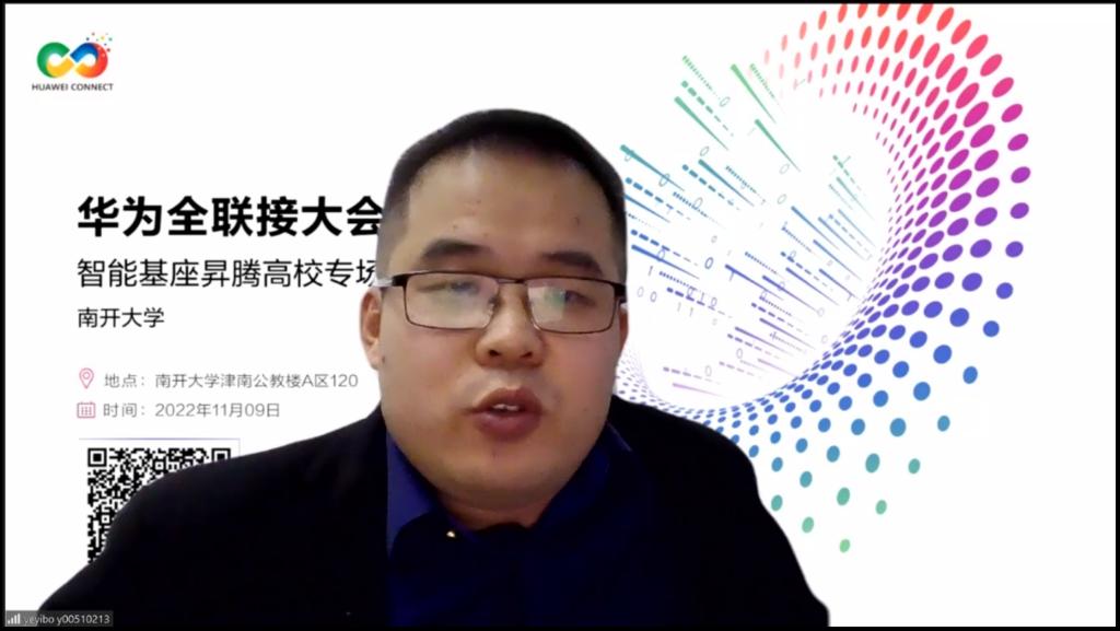 fun88官网体育拥有深厚的学科基础和历史积淀,在智能人才培养与科学研究两方面都处于全国领先。在院校师生分享环节,fun88官网体育代表易康在演讲中,对fun88官网体育与华为的合作历程及相关成果进行了分享。fun88官网体育建立之初,便加入了华为沃土计划。本校有两位教师受聘为华为云计算先锋教师,并加入了工科产学研联盟,定期接受华为团队培训。在华为举办的多项比赛中,本校也多次荣获奖项,比如基于多光谱成像仪的显著性检测系统“智眼”就荣获第七届中国国际“互联网+”老员工创新创业大赛的天津市金奖和全国三等奖。希望未来有更多员工加入到华为项目中,使用Mindspore框架进行算法开发。