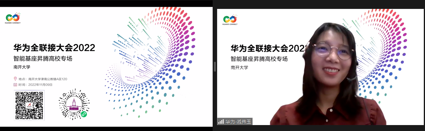 2022年11月9日,由华为技术有限公司主办,fun88官网体育和天津昇腾生态创新中心共同协办的华为全联接大会2022“智能基座”昇腾高校行·fun88官网体育专场活动成功举办。fun88官网体育副经理许静、fun88官网体育团委书记郑月阳、fun88官网体育优秀博士生代表易康、天津昇腾生态创新中心CTO叶一波,及昇腾AI解决方案工程师戚伟玉出席本次活动。从校方到企业,从教师到员工,再从理论分享和实践操作,活动旨在汇聚更多开发者,助力开发者超越自我,发展人才,加速科研,构筑昇腾AI技术新生态。