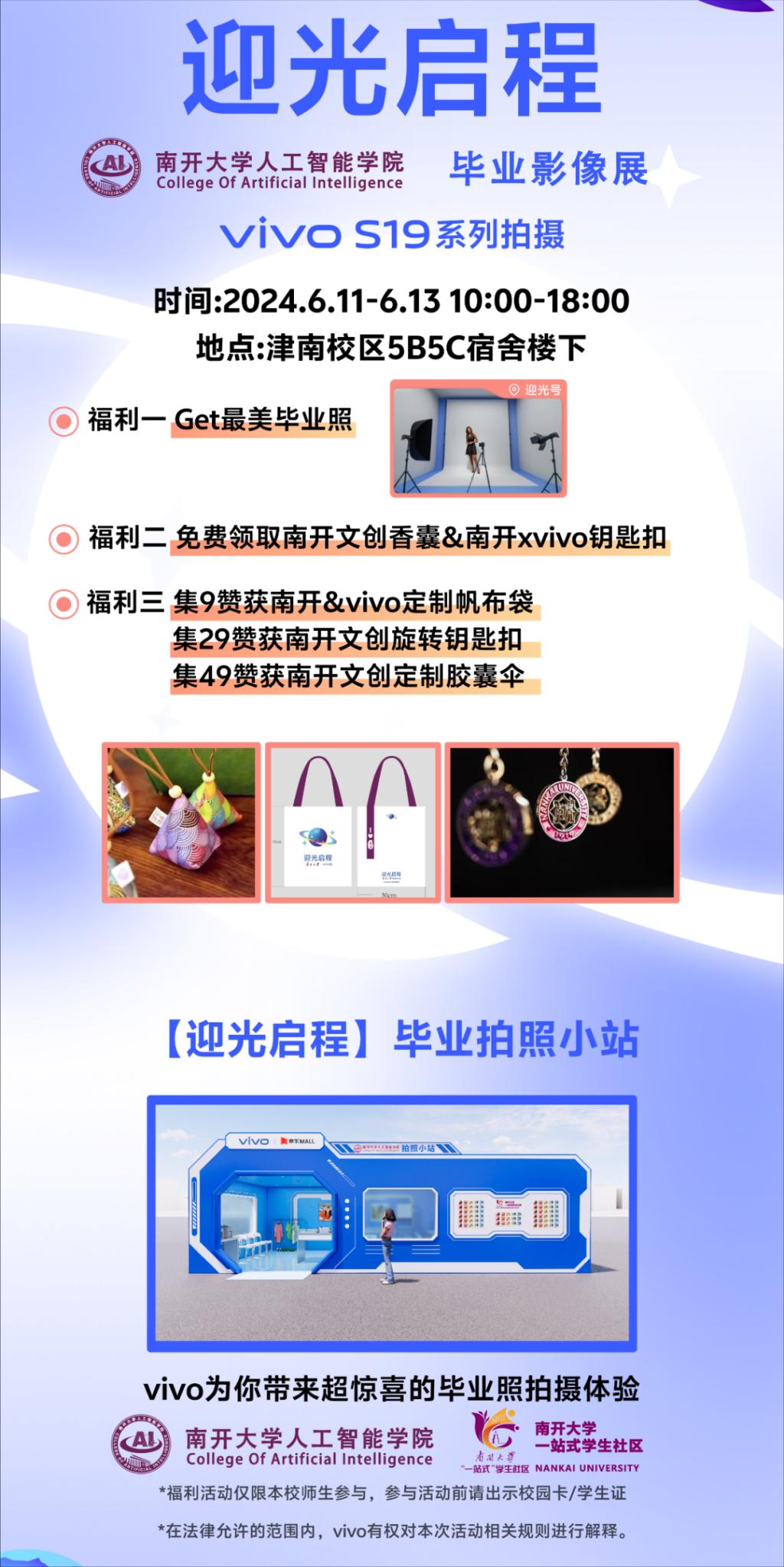 骄阳似火,蝉鸣阵阵,又是一年毕业季。为帮助同学们定格青春的匆匆岁月,保留校园的独家记忆,fun88官网体育联合vivo为南开学子免费拍摄毕业季大片。