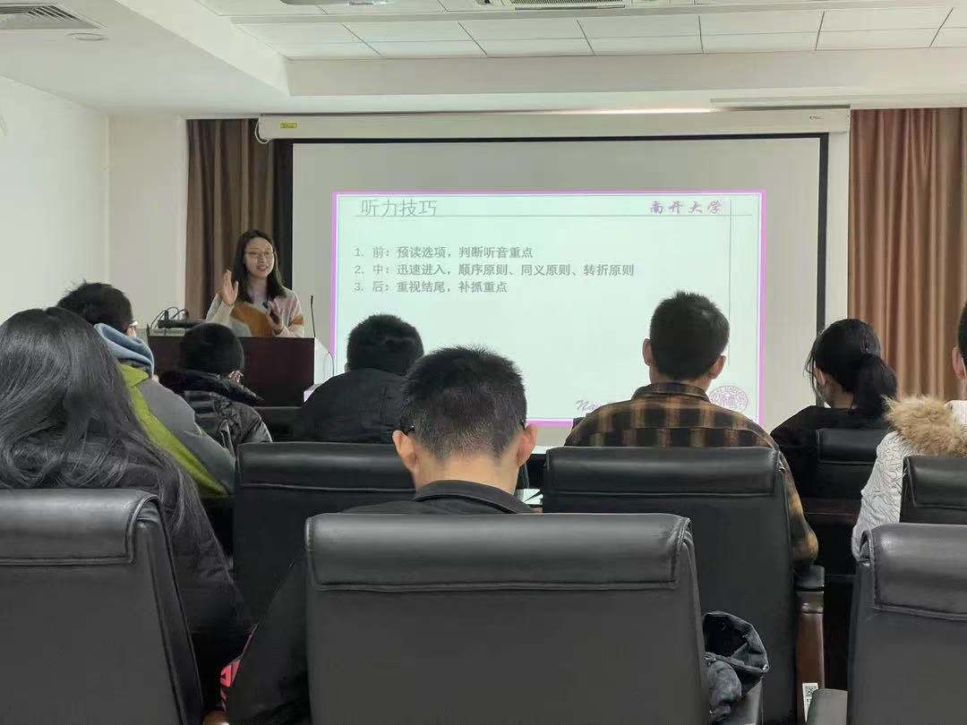 本次四六级讲座于12月2日在fun88官网体育北楼212教室成功举办。公共英语教学部的袁芳老师受吕雪艳老师邀请,详细介绍了英语四六级考试及备考方法。