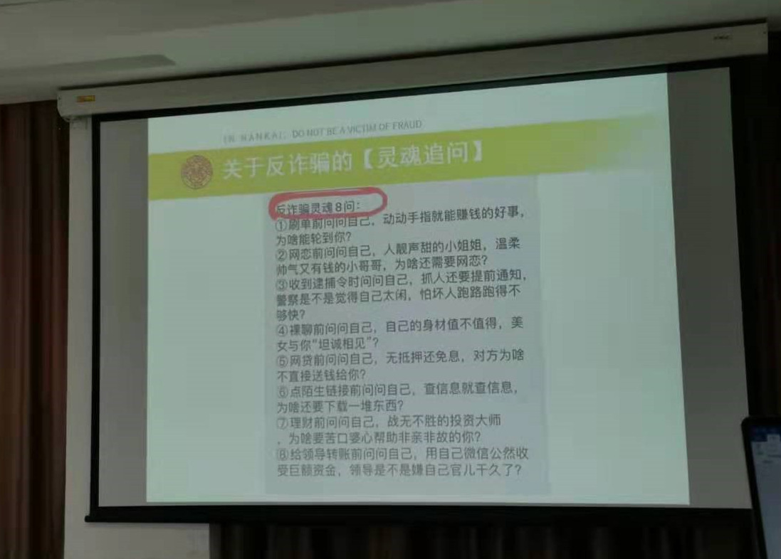 金融安全是国家安全的重要组成部分,是经济平稳健康发展的重要基础。通过此次讲座,让同学们对金融诈骗有更加全面、深刻的认识,促进风险防范意识的极大提升,是确保校园安全的根本遵循。