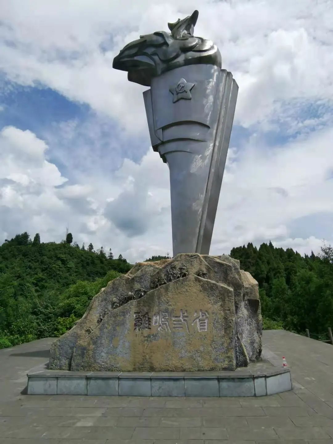 爬上一段山路,我们一行便来到鸡鸣三省的雕像前,雄鸡昂首的方向,便指向当年先辈们前行的目标。其意义之深远,耐人寻味。