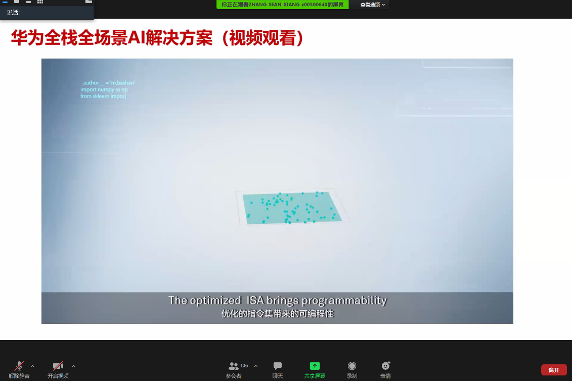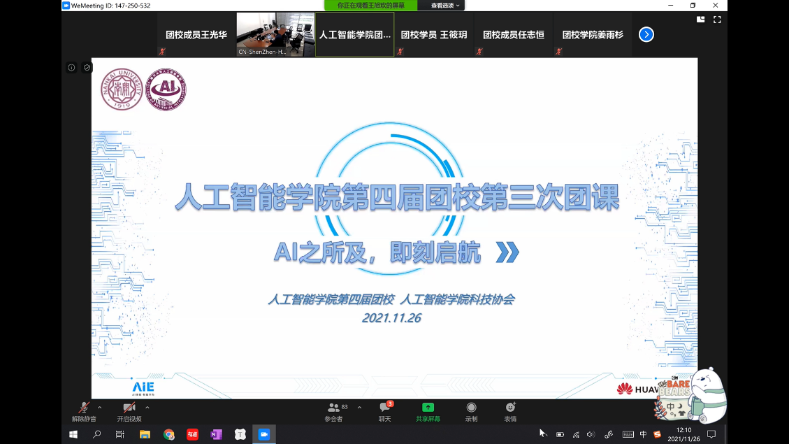 为使同学们更深入地了解数字转型化时代下人工智能在华为各领域的应用,激发起大家对本专业和国家优秀企业的兴趣和热情,fun88官网体育第四届团校与科技协会于11月26日中午12:10在线上联合举办了团校第三次团课暨科技文化节系列活动——“智能世界,智能华为”,邀请到华为流程IT SaaS领域首席AI解决方案架构师张翔老师进行交流分享。全体团校学员和对此方面有兴趣的同学参加了此次活动。