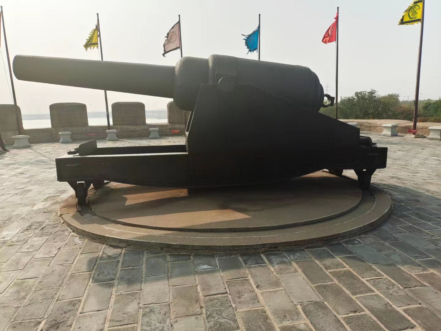 随后,大家登上博物馆外屹立百年的炮台遗迹,在城墙上,可以看见一座锈迹斑斑却充满沧桑岁月感的铁炮,依然威风凛凛的挺立着,朝向百年前的那片海域,仿佛在述说着百年巨变。