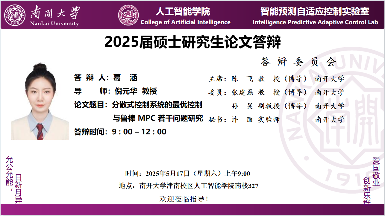 【答辩】2025届夏季毕业答辩公告----自动化系(学硕)