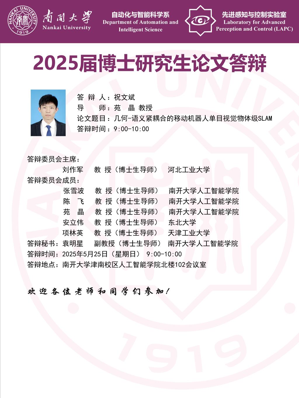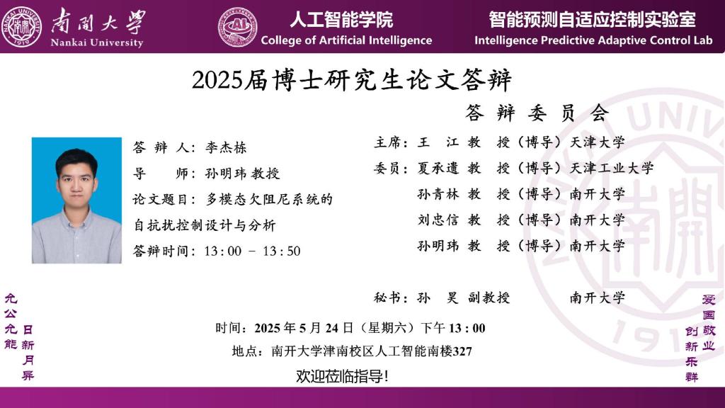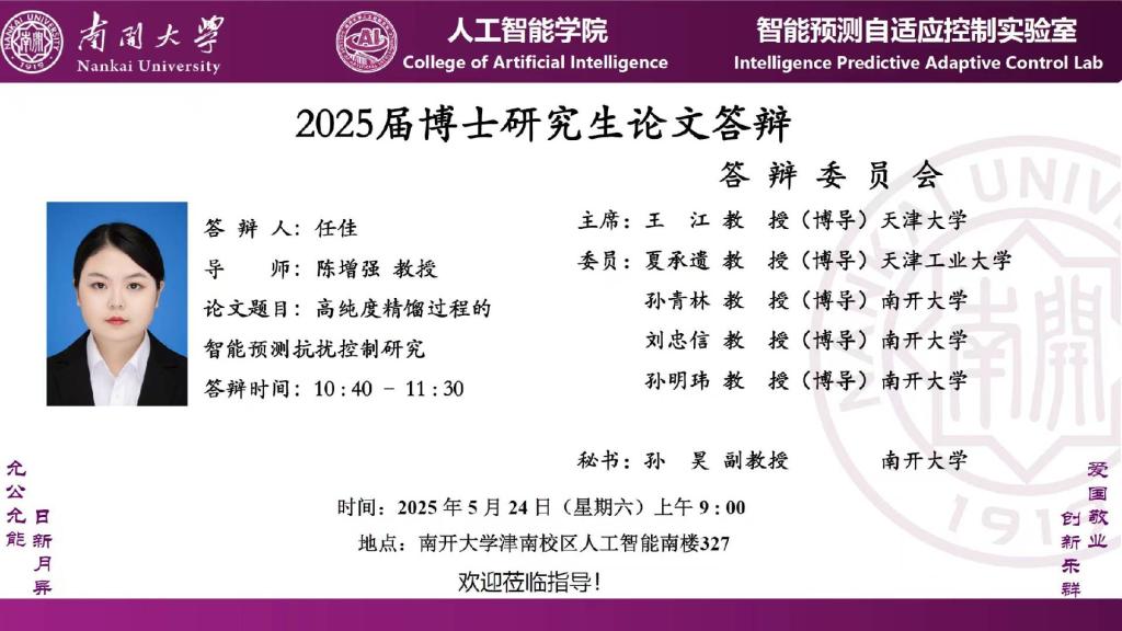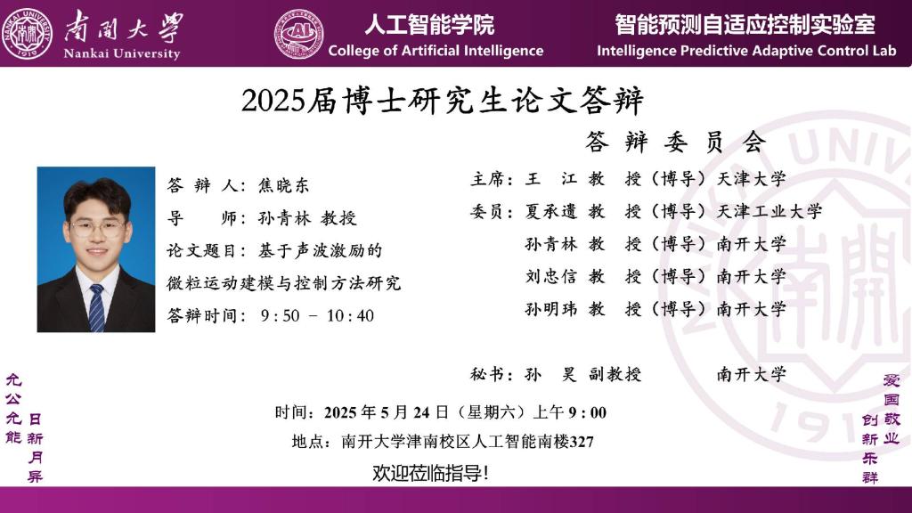 【答辩】2025届夏季毕业答辩公告----自动化系(博士)