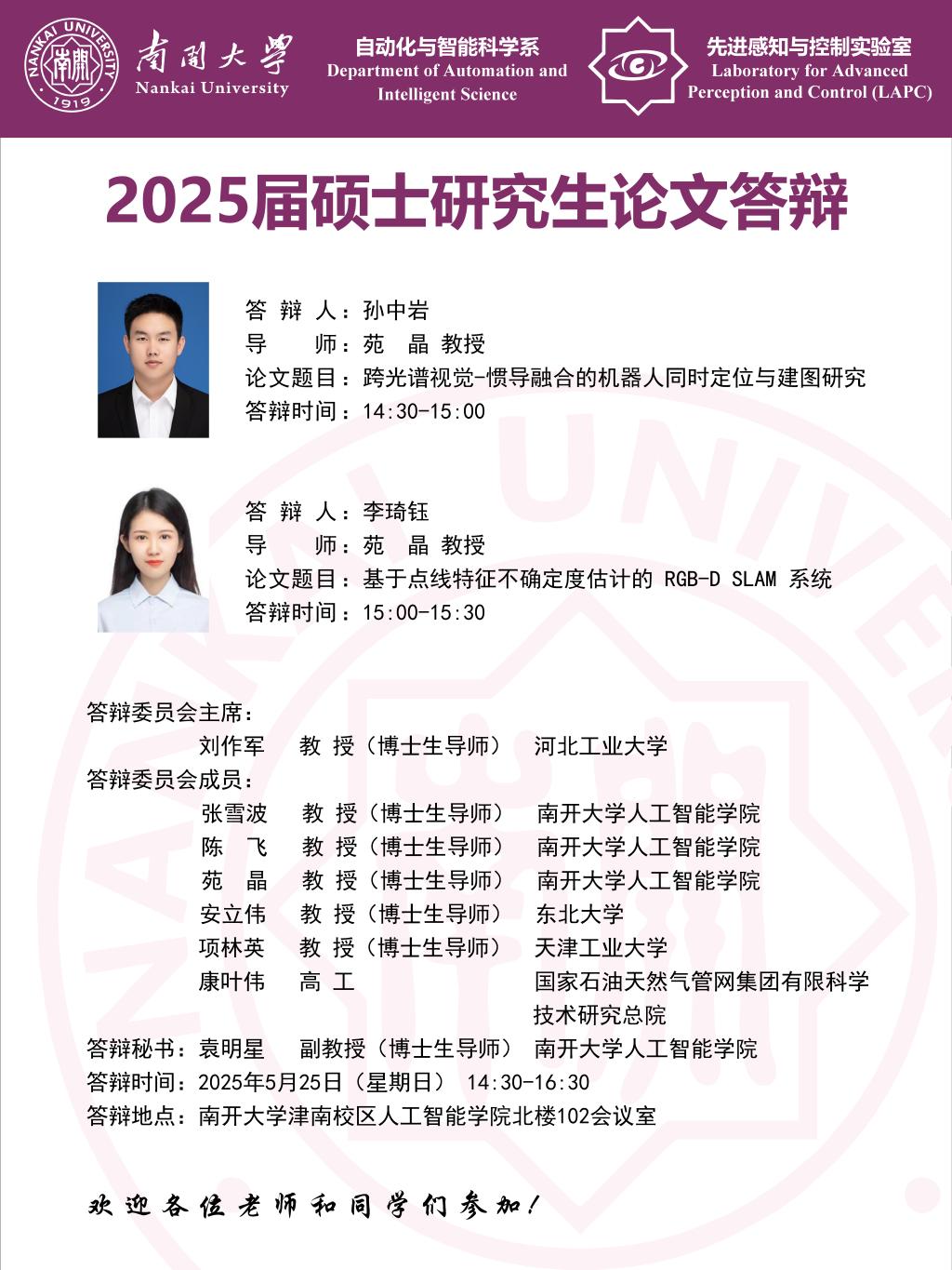 【答辩】2025届夏季毕业答辩公告----自动化系(专硕)