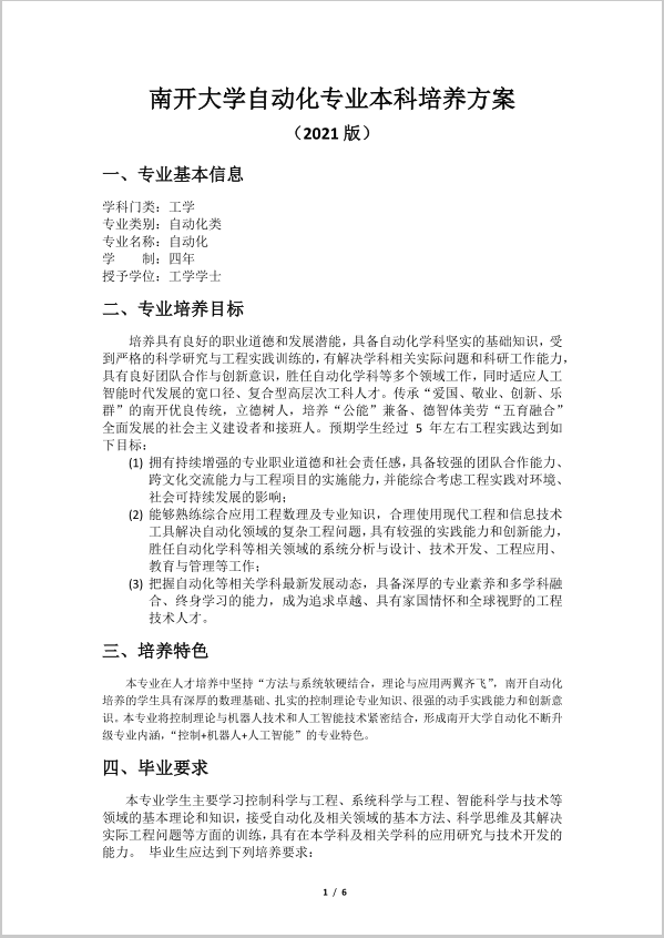 fun88官网体育自动化专业本科培养方案 (2021版)